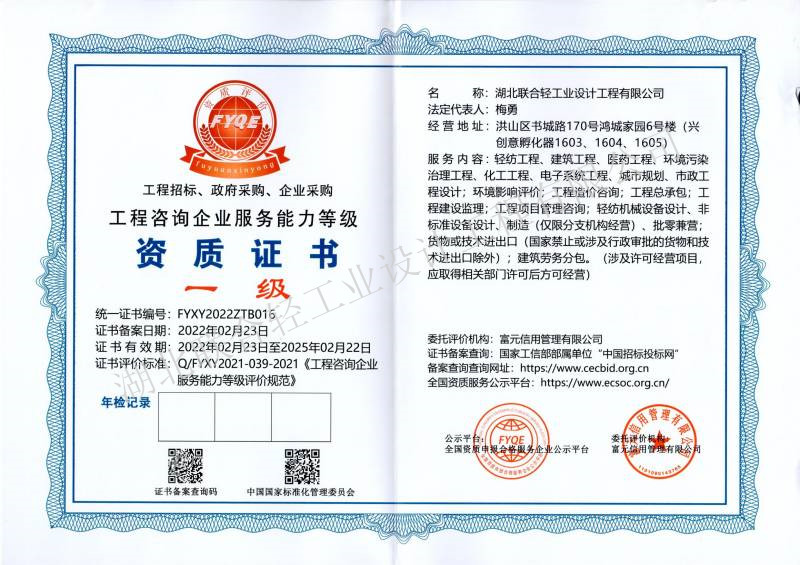 湖北聯合輕工設計工程有限公司成立于2009年,其前身為湖北省輕工業科學研究設計院設計所。2008年,根據國家關于事業單位改制、建立現代企業制度的文件要求,經湖北省輕工行業主管部門批準(批準文號:鄂輕資[2008]第40號),成立于1958年的省屬國有事業單位—湖北省輕工業科學研究...[ 查看詳情 ]
